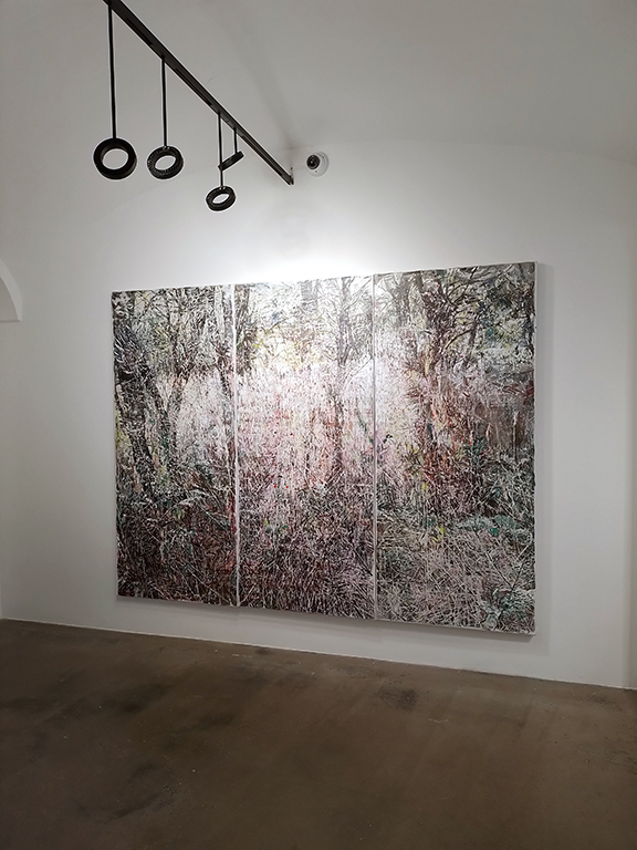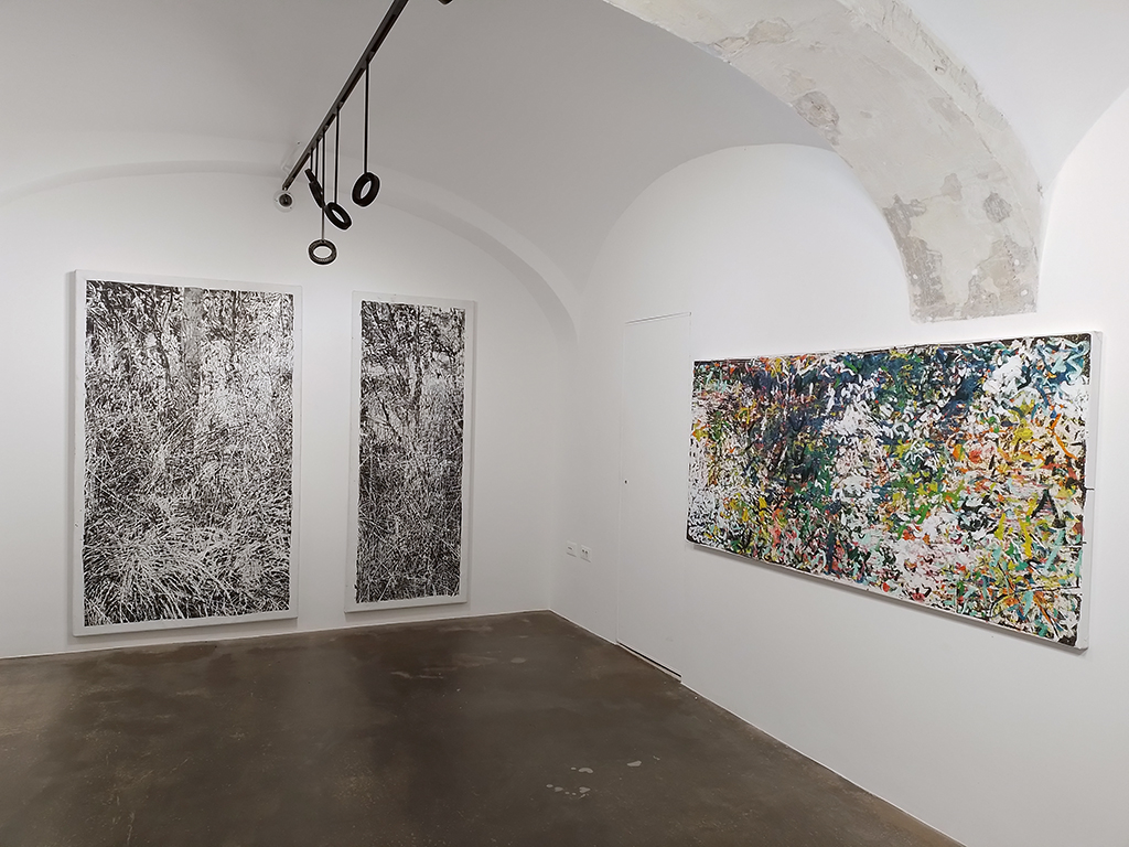 Izbrana dela za razstavo so plod istovrstne slikarske akcije, katere motivni vzvod so prizori navadno prezrtega eksternega sveta. Prav tako pa dela druži pestra uporaba slikarskih ali risarskih sredstev. Podoba v sliki je grajena iz različnih in raznorodnih pojavnosti, pogosto so to gestualni zapisi in drugi gradniki, katerih odnosi so jasno določeni, splasteni na površino slike. Privabljajo gledalčev pogled, ki se zavozlava (izgublja ali najde) ob razbiranju detajlov, ki nastopajo kot protipol motivnega sidrišča. To neprestano nihanje med slikarsko materijo in uzrtjem krajinskega prizora nenazadnje namiguje na bivanjsko ambivalenco, na razpetost med trohnenjem, propadanjem in minevanjem in tej nasprotno zmožnostjo ponovnega vznika. V trohnenju je potencial ponovnega življenja.
