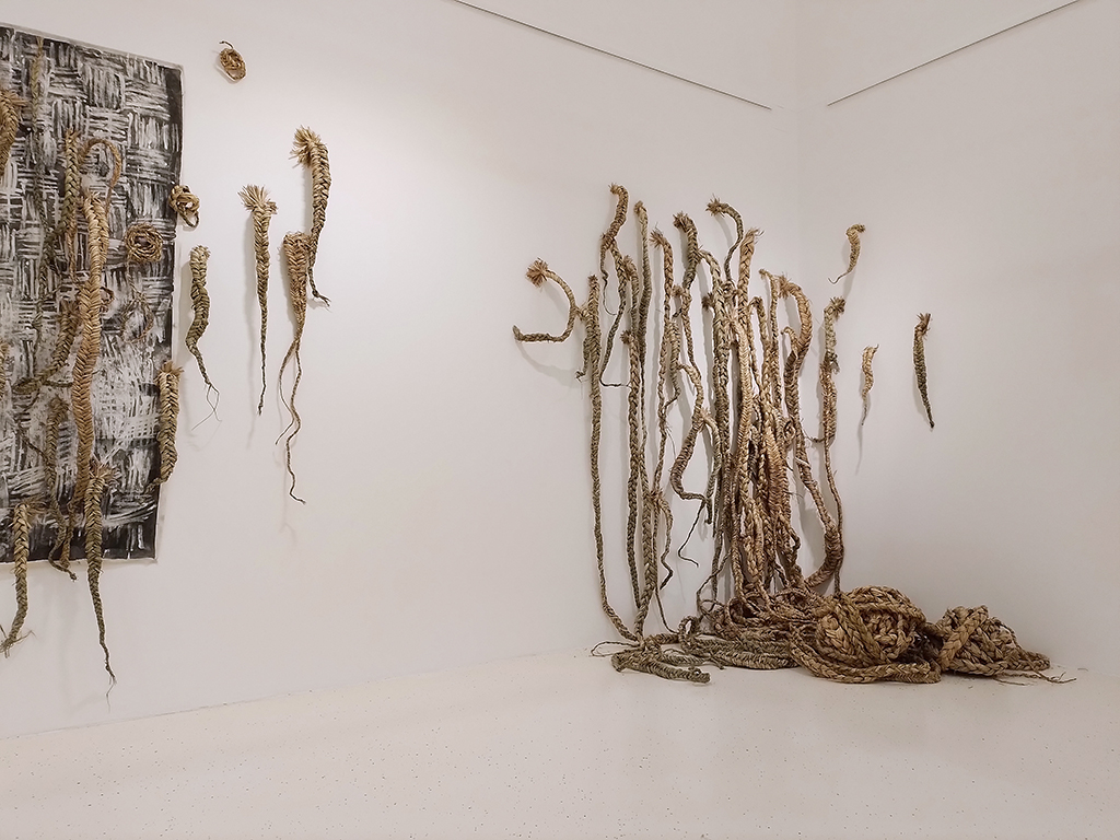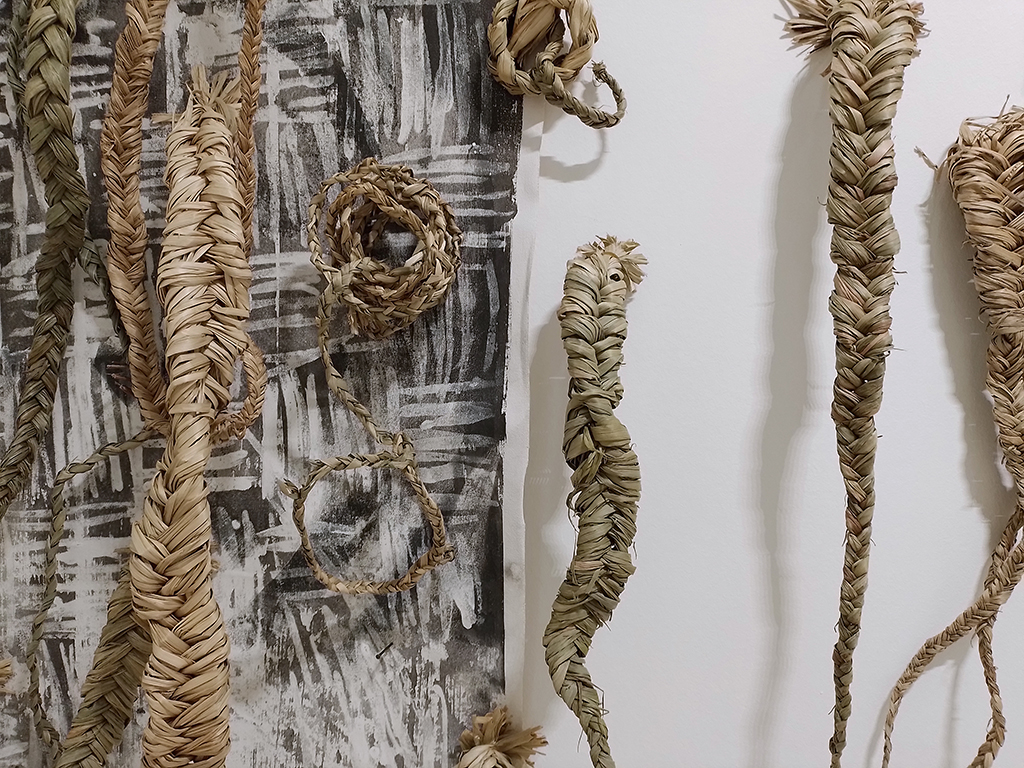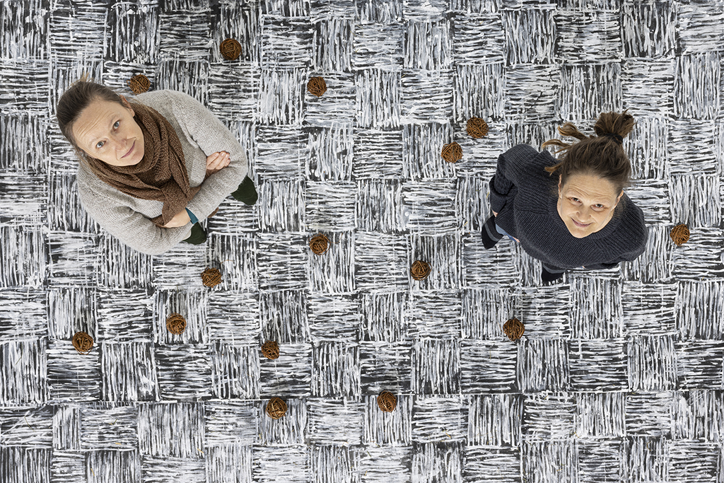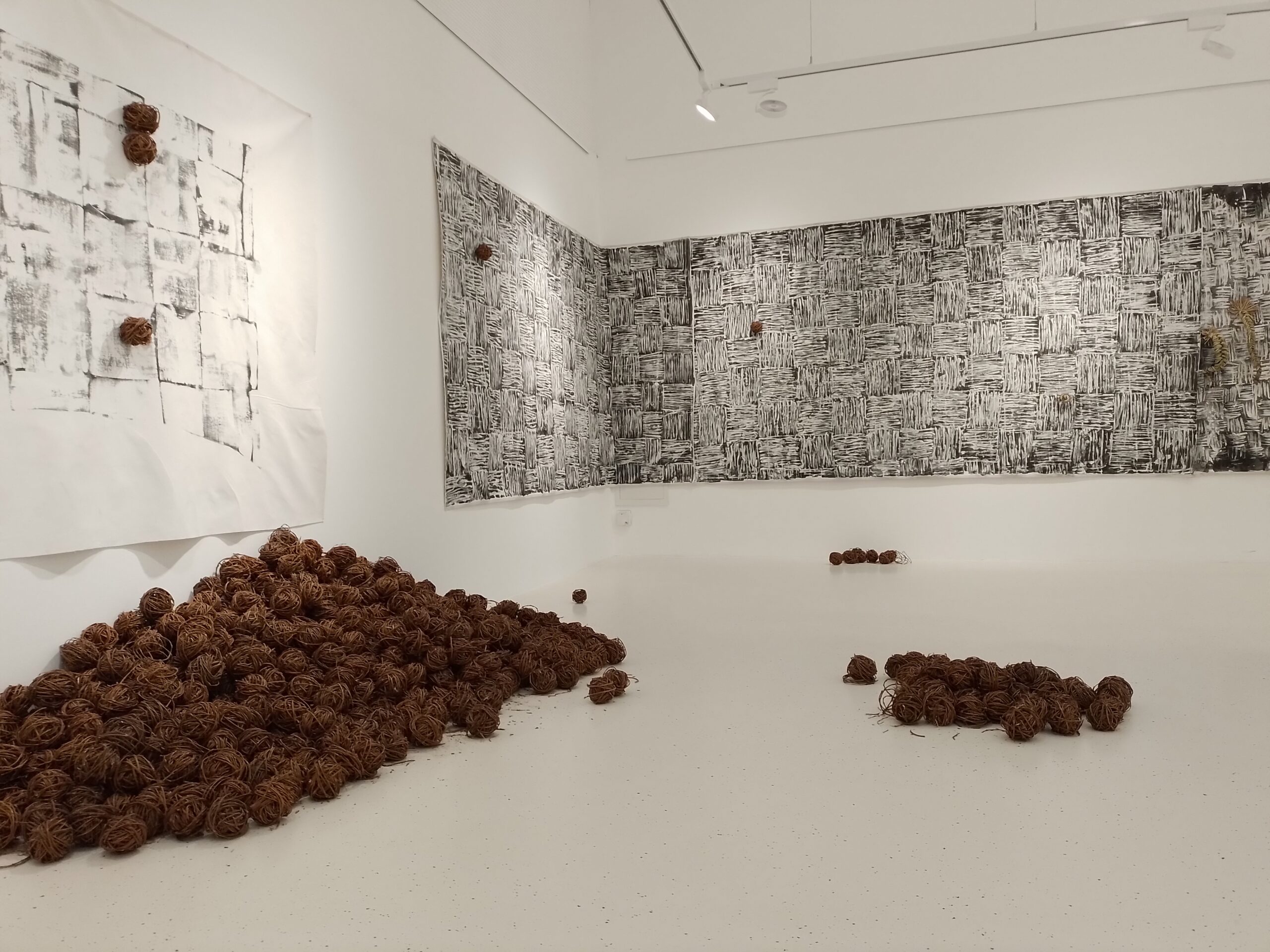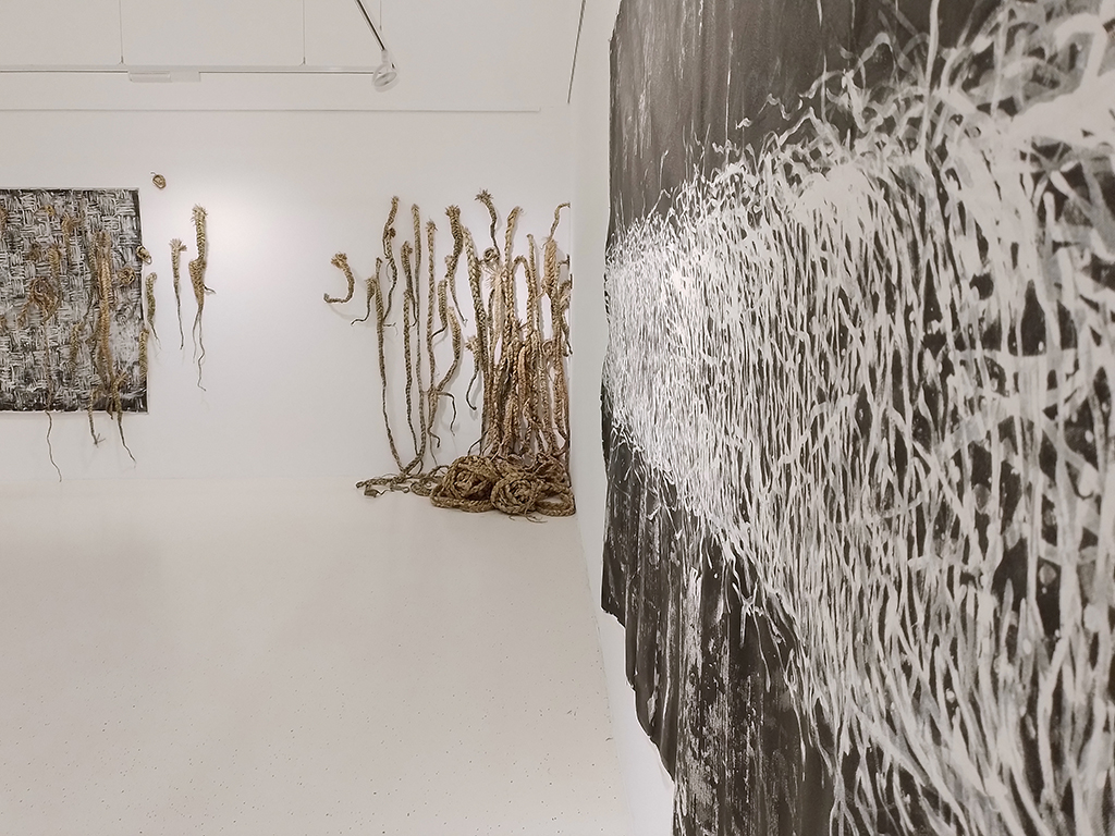 Eksperimentalna razstava je vpogled v umetniško produkcijo Anje Jerčič Jakob in Mateje Kavčič. V njunem dosedanjem likovnem praktikumu so presečišča in prepleti tako na vsebinski ravni kot tudi v sami materialni snovnosti, očitni. Materialna izhodišča, iz katerih gradita svoja dela, so raznorodna, pri nekaterih delih iz slikarske, pri drugih iz stvarne snovnosti. Kar se slednje tiče, lahko izpostavimo rabo ali re-uporabo žive ali mrtve rastline, ki je prisotna pri obeh, a sicer v različnih časovnih obdobjih ustvarjanja.Njuna slikarska ali risarska dela ne temeljijo zgolj na želji po posnemanju izgleda narave, temveč tudi na mimezi postopkov oziroma procesov, ki gradijo ali razgrajujejo v naravi (prekrivanje, polivanje, razkrajanje, kapljanje, naključnost…). V zadnjem obdobju je Anja izrazito v slikarski snovi, Mateja (so)deluje predvsem z naravnimi materiali organskega izvora, a obe gradita podobo s sorodnimi načini. Anja spleta in prepleta poteze s slikarsko snovjo, Mateja spleta rastlinje. Obe gradita tvorbe, ki na gledalca delujejo organsko, kot da naključno. A kljub temu gre predvsem za zelo nadzorovane, s kultiviranim potezanjem, nastale tvorbe.